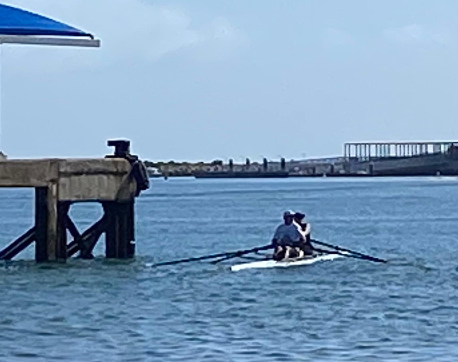 2x scull no cais.. 2x scull a dirigir-se para o rio